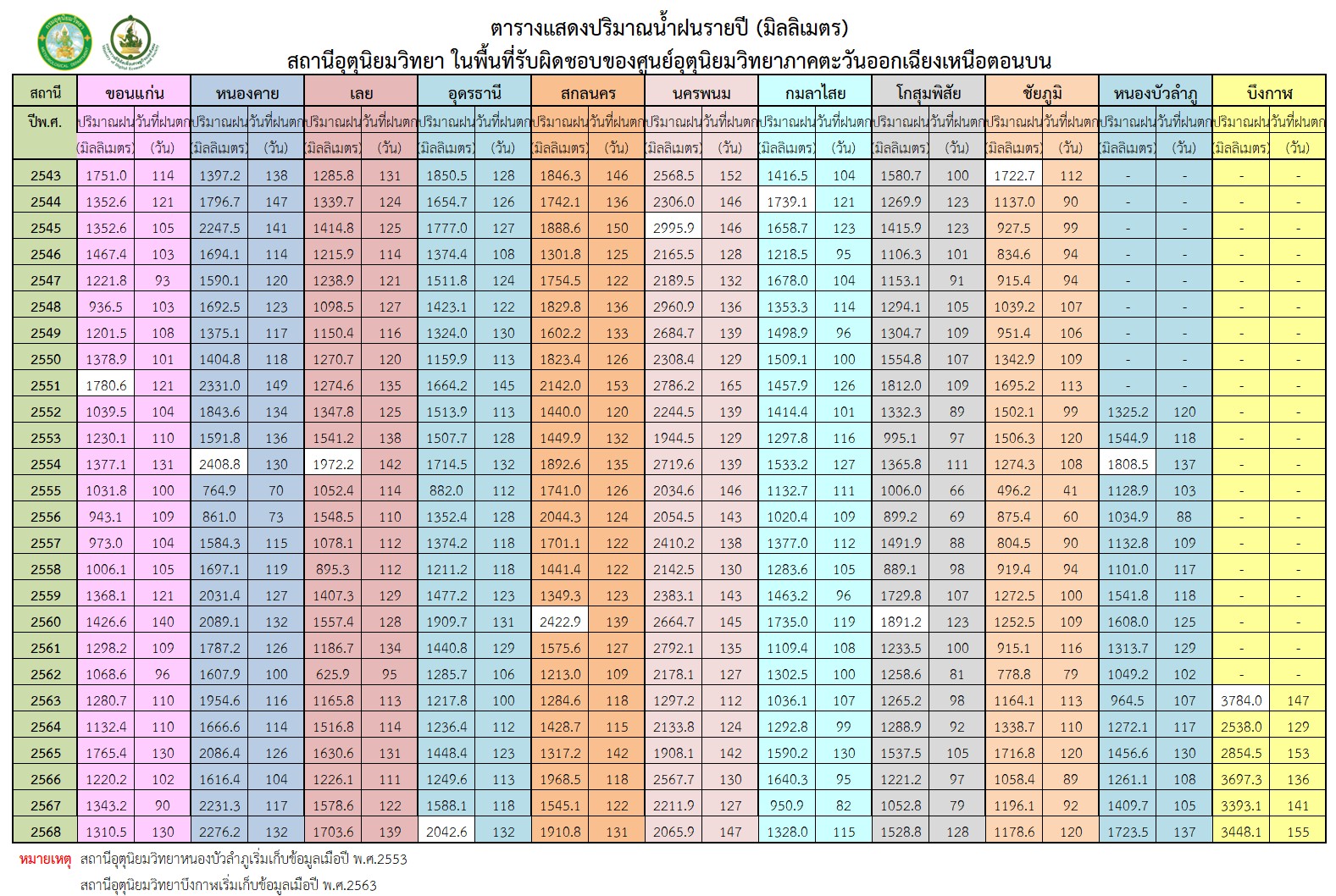 ปริมาณน้ำฝนรายวัน จ.ขอนแก่น